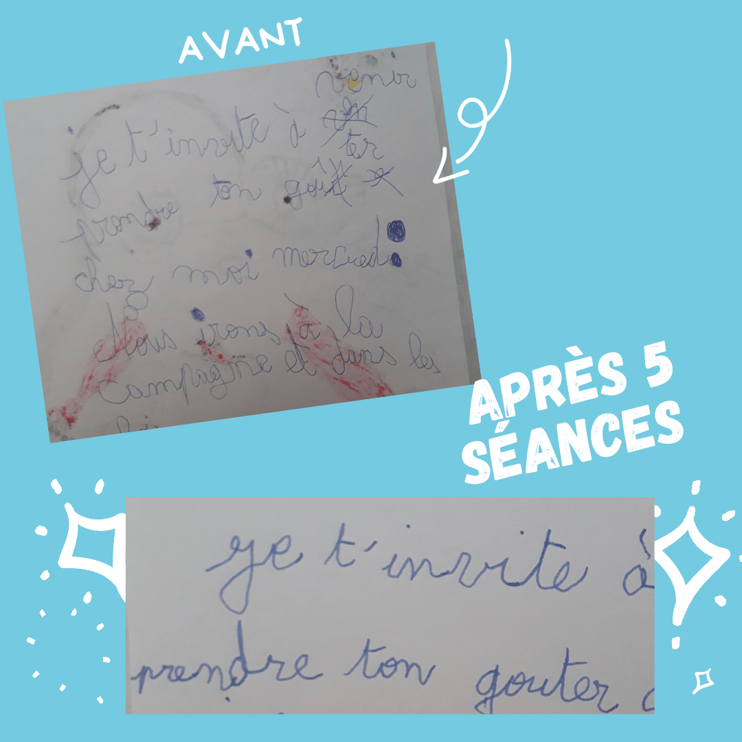 Les difficultés d'écriture provoquent souvent du découragement, de la démotivation et parfois même du dégoût. Au-delà du geste d'écriture, il sera important de veiller à retrouvé le plaisir d'écrire. Je m'engage à maintenir une bienveillance tout au long du parcours de rééducation et de vous accueillir dans la bonne humeur.